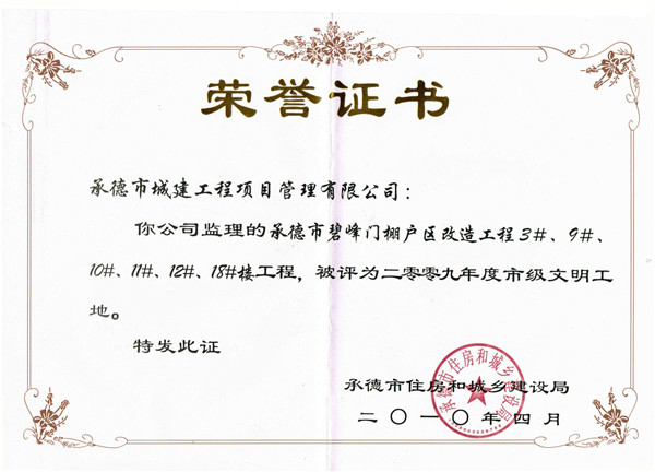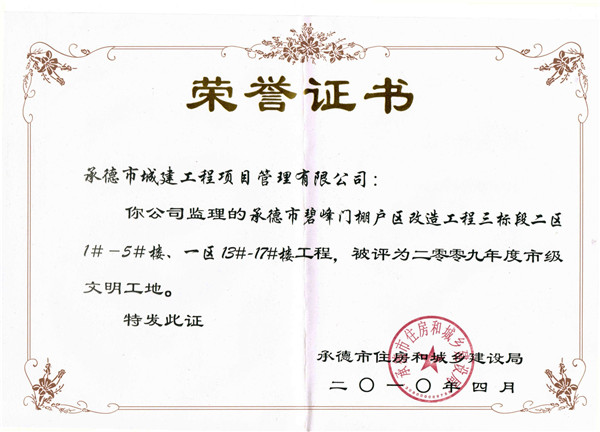 市級榮譽(yù)——文明工地